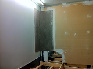 Once the laminex is cured, the timber guides are then removed, the holes plugged up (from the screws used to hold the timber to the wall) and then the painting can begin..